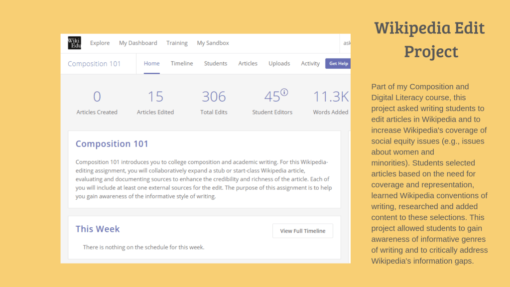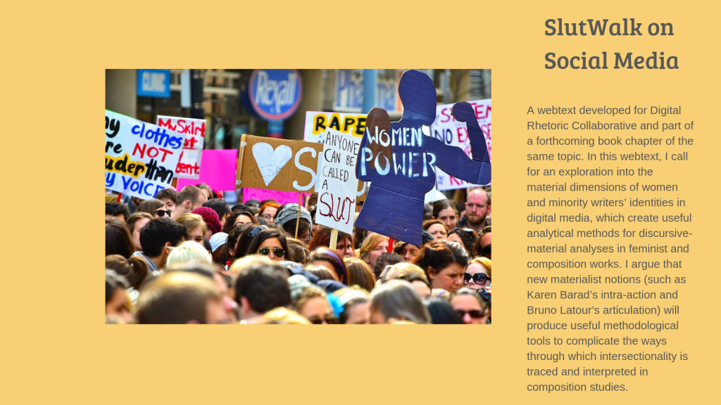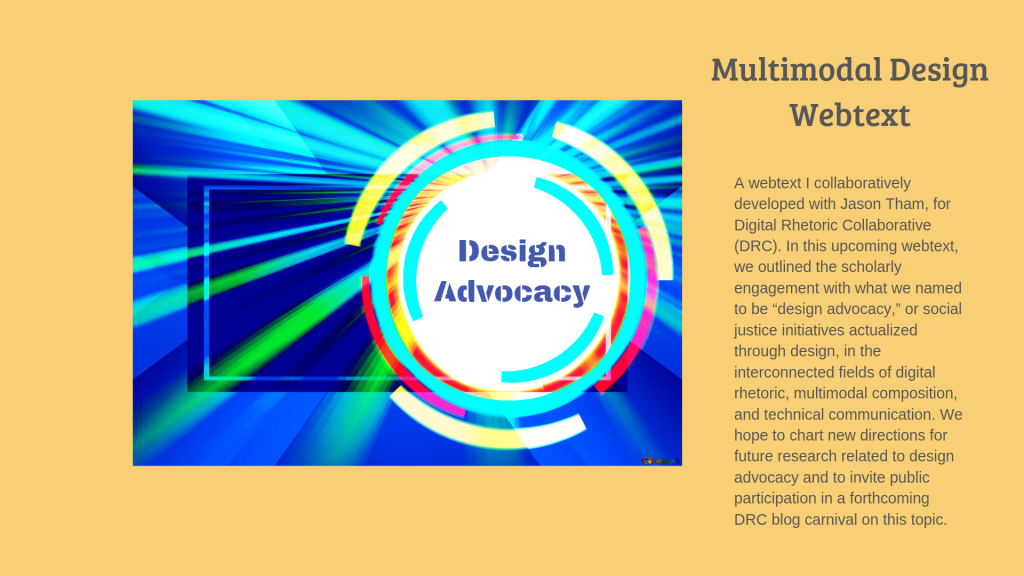 In both my teaching and research, I am dedicated to digital writing scholarship and online publishing. I also experiment with new and innovative pedagogical approaches to multimodal composition. My digital portfolio, below, demonstrates my commitment to this type of work. Please select an image to learn more about my digital projects.